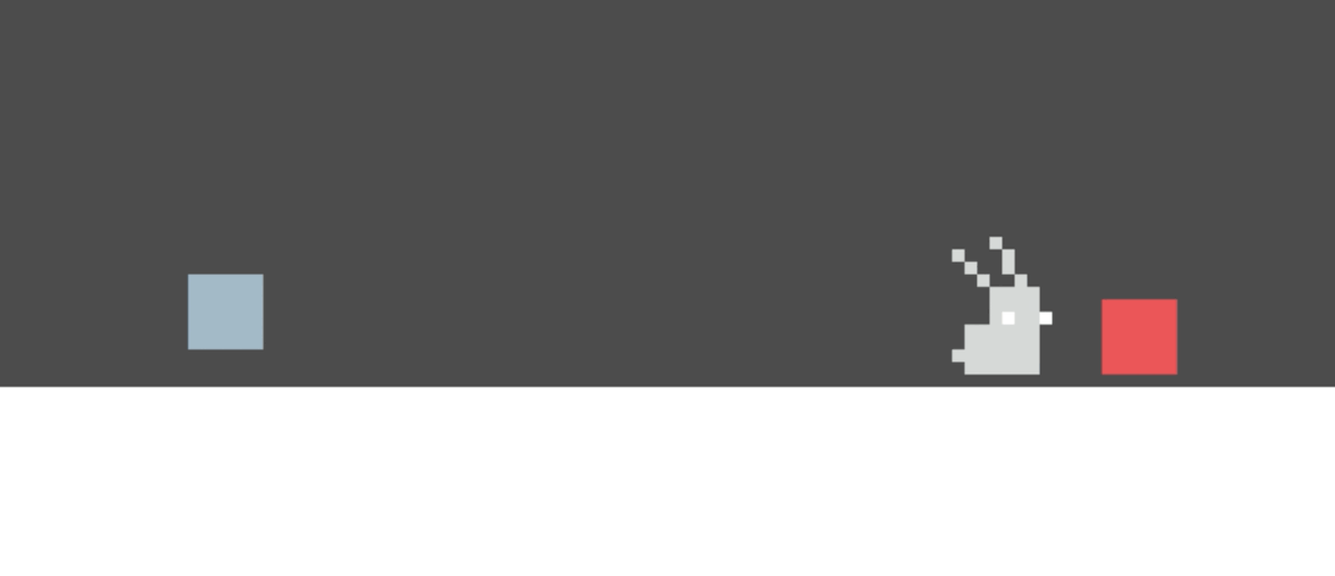 I've also added a follow mechanic so that squares and (eventually) other rabbits can follow the player around like in Flicky. I made it extra fancy so that the spacing between the followers can be set independently from the spacing between the player and its followers. Why? Because I foresee potential issues with this type of spacing. Also, because I tend to plan ahead when it's not necessary.